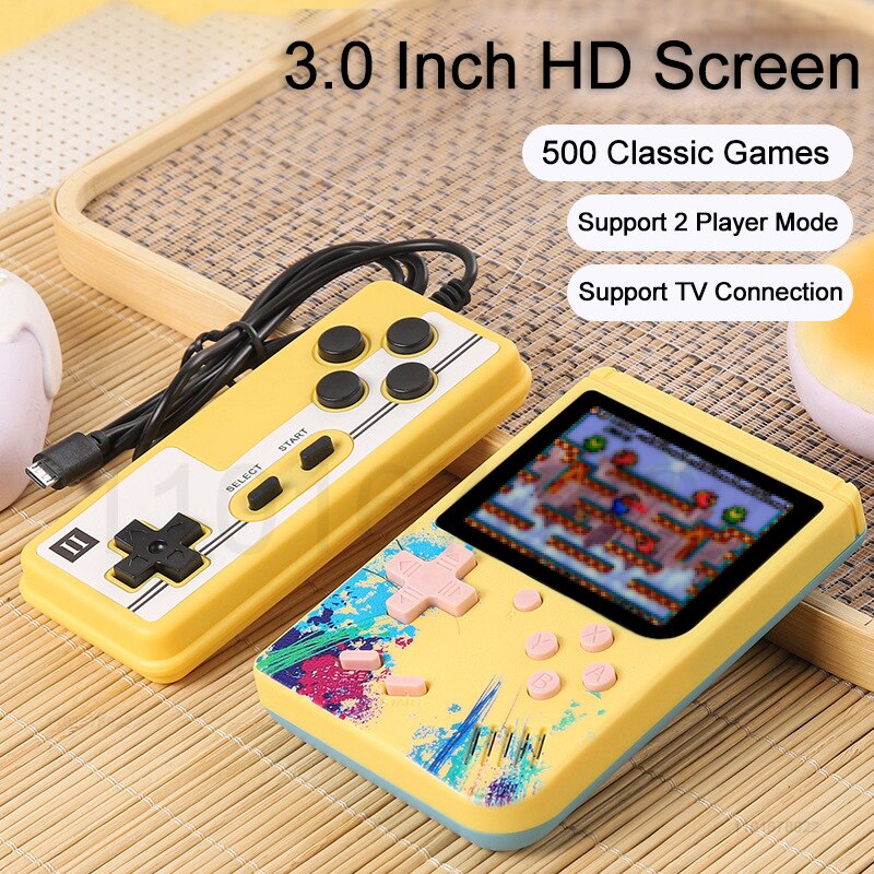 Introducing the 500 IN 1 Retro Video Game Console – your new go-to device for timeless fun! This classic handheld game console is ready to unleash a world of entertainment, offering up 500 different games for endless hours of enjoyment. Featuring a 3.0 inch wide LCD screen and HD display, you can be sure of crisp visuals that make playing a pleasure. And up to two players can join in at once for some friendly competition – or team up to take on an opponent on the big screen, as the Retro Video Game Console can transfer its game surface to your TV. It's perfect for everyone too; adults and kids alike can experience all the heart-pounding thrill of retro gaming! This compact and portable retro game console is also ideal for on-the-go play – just slip it into your bag and enjoy some quality gaming time wherever you may roam. With the 500 IN 1 Retro Video Game Console, you're set for hours of unforgettable fun!