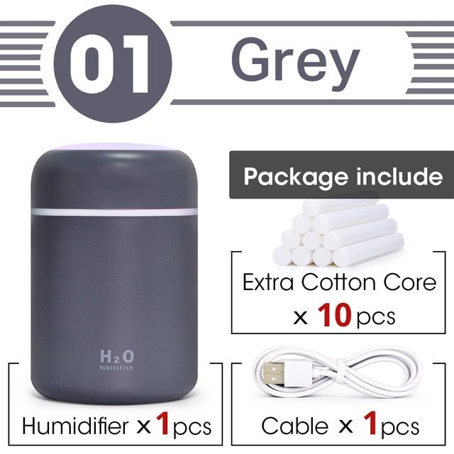 This humidifier is designed to be compact and portable, making it convenient to use in various settings. It can be powered through a USB connection, allowing you to use it with a computer, power bank, or even in your car. It provides both functional and aesthetic benefits, contributing to a more comfortable and enjoyable atmosphere.