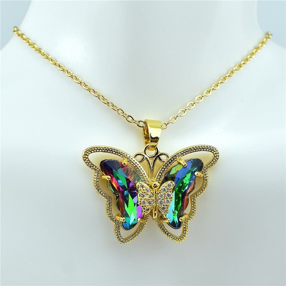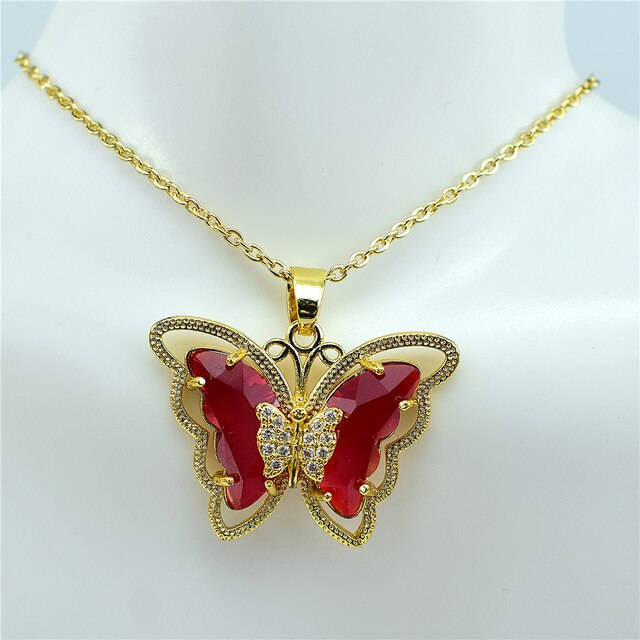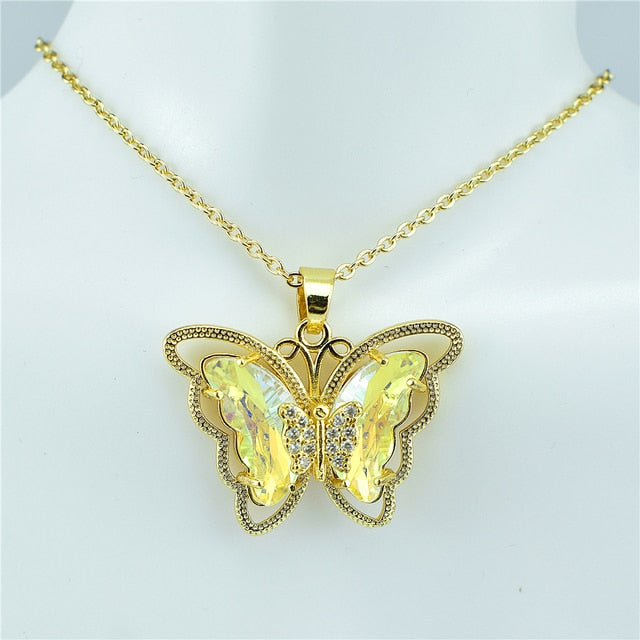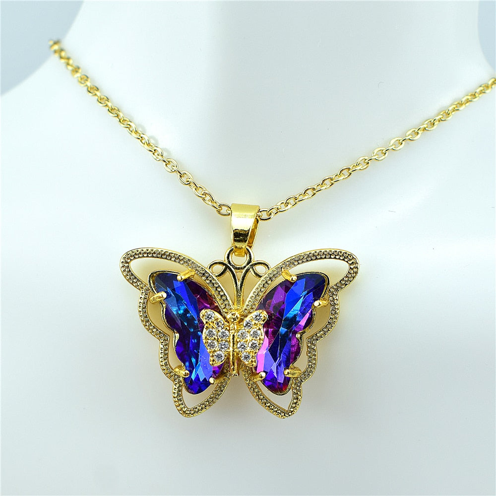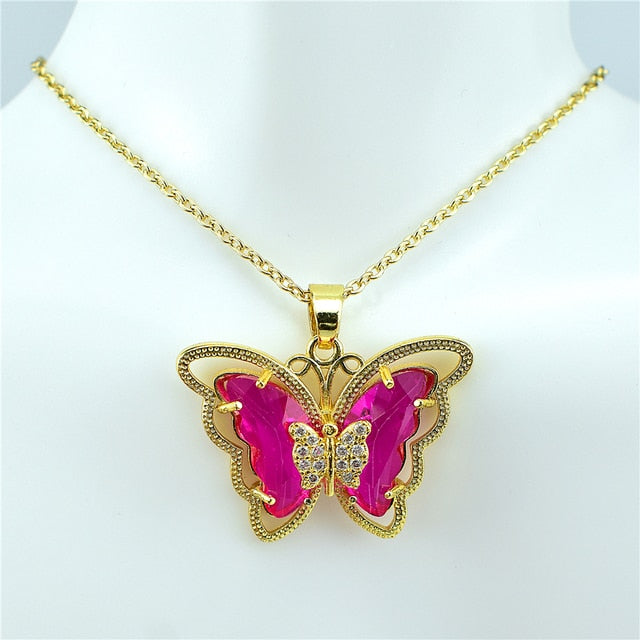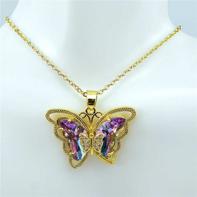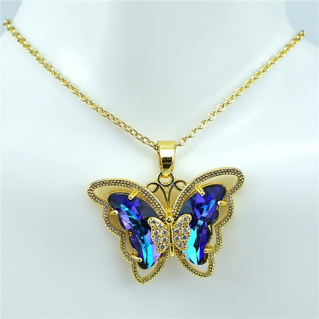 Give your look a delicate and stylish touch with our Crystal Glass Butterfly Necklace. Handcrafted from crystal glass, this necklace features a unique butterfly pendant with sparkling details that will elevate any outfit. The graceful curves of the O-word chain form an elegant silhouette that can be worn day or night. Easily dress up a casual look or give office attire an added touch of glamour. Whether you want to make a statement in a special occasion or add something special to an everyday look, this necklace comfortably pairs with everything. Get ready for compliments wherever you go! Our Crystal Glass Butterfly Necklace is sure to be the timeless accessory your wardrobe needs.
