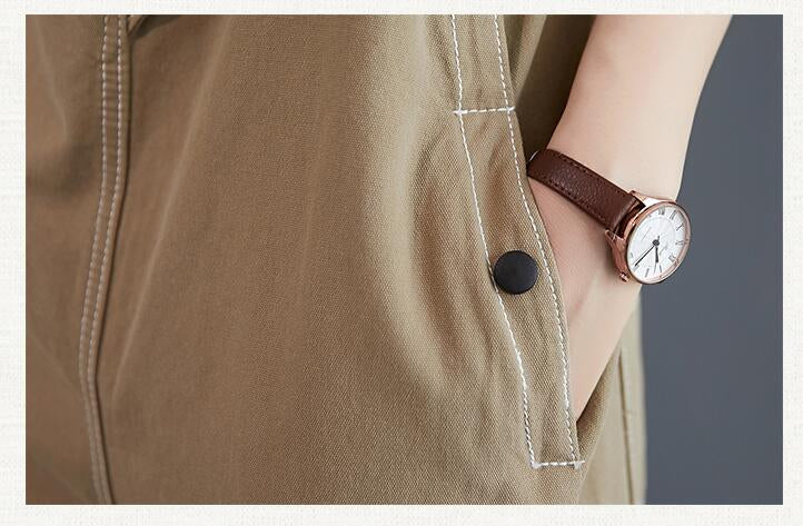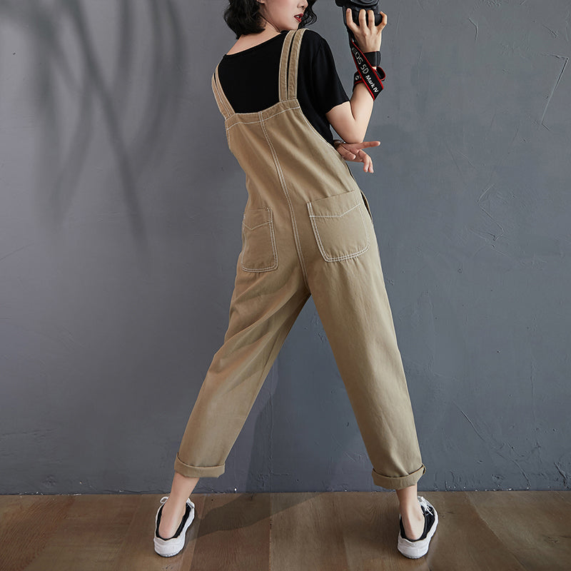 Introducing our new Denim Plus Size Suspender Jumpsuit! These overalls are perfect for a casual look or can be dressed up for a more stylish outfit. The jumpsuit features a fitted bodice with suspender straps and loose-fitting pants that flare out at the bottom. It is made from a stretchy denim fabric that is comfortable to wear and will hug your curves in all the right places. The khaki or red color is perfect for the summer months and will make you stand out from the crowd. Pair this jumpsuit with a white tee and sneakers for a casual look, or dress it up with heels and a statement necklace for a night out on the town. Whatever way you choose to wear it, you'll be sure to turn heads in this stylish jumpsuit.