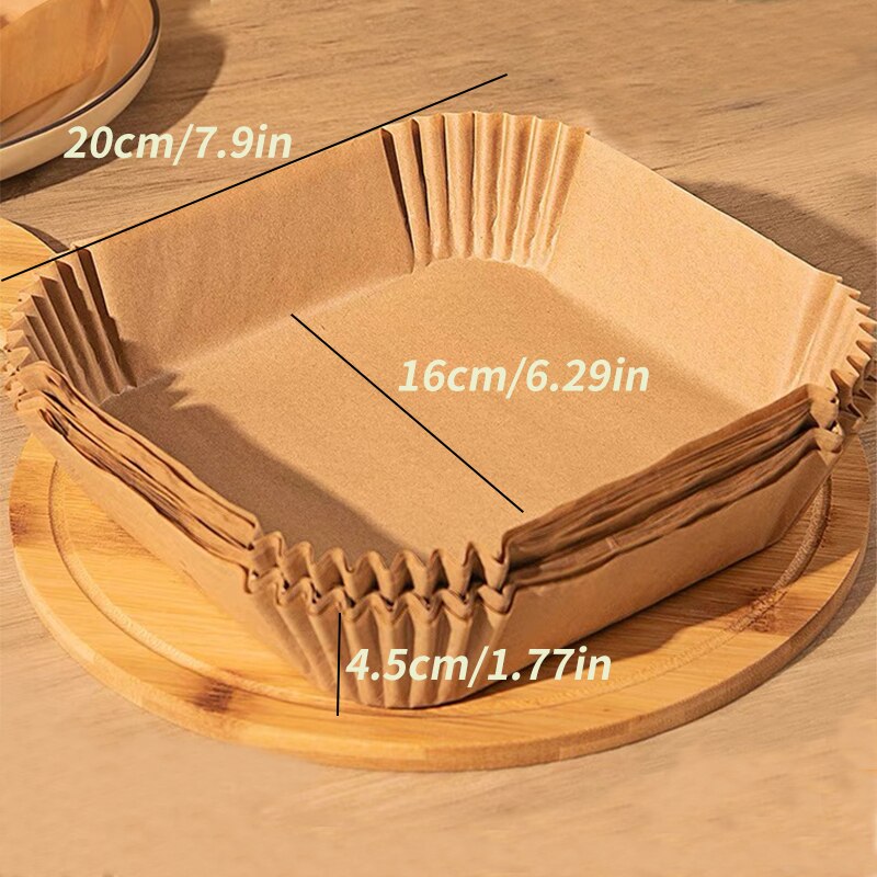 Introducing the Disposable Airfryer Parchment Tray – the perfect accessory for any air fryer. This set comes with 50 pieces of non-stick paper liners, making it easy to keep your air fryer clean and free of wasted cooking oil. The parchment paper is designed to make sure that no interfere with the heat and air circulating inside your appliance, allowing you to cook food quicker and more efficiently. Coming in a unique square design, this product is ideal for all types of cuisines such as roasts, fish, or vegetables. Enjoy perfectly cooked meals without spending time cleaning up afterward - why not give it a try?