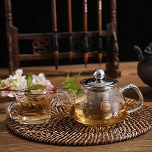 Bring a touch of modern elegance to your tea time with the Glass Teapot & Cup. This stylish set features a high-quality glass teapot and cup, making it the perfect choice for those who appreciate the finer things in life. The stainless steel filter infuser lid tightly fits the teapot so that you can be sure your tea is as flavorful and fresh as possible, while also keeping stray leaves from spoiling your perfect cup. The modern design of this set will be a beautiful addition to any table or serveware display. Perfect for both special occasions and everyday use, this Glass Teapot & Cup set is an excellent choice for any tea lover.