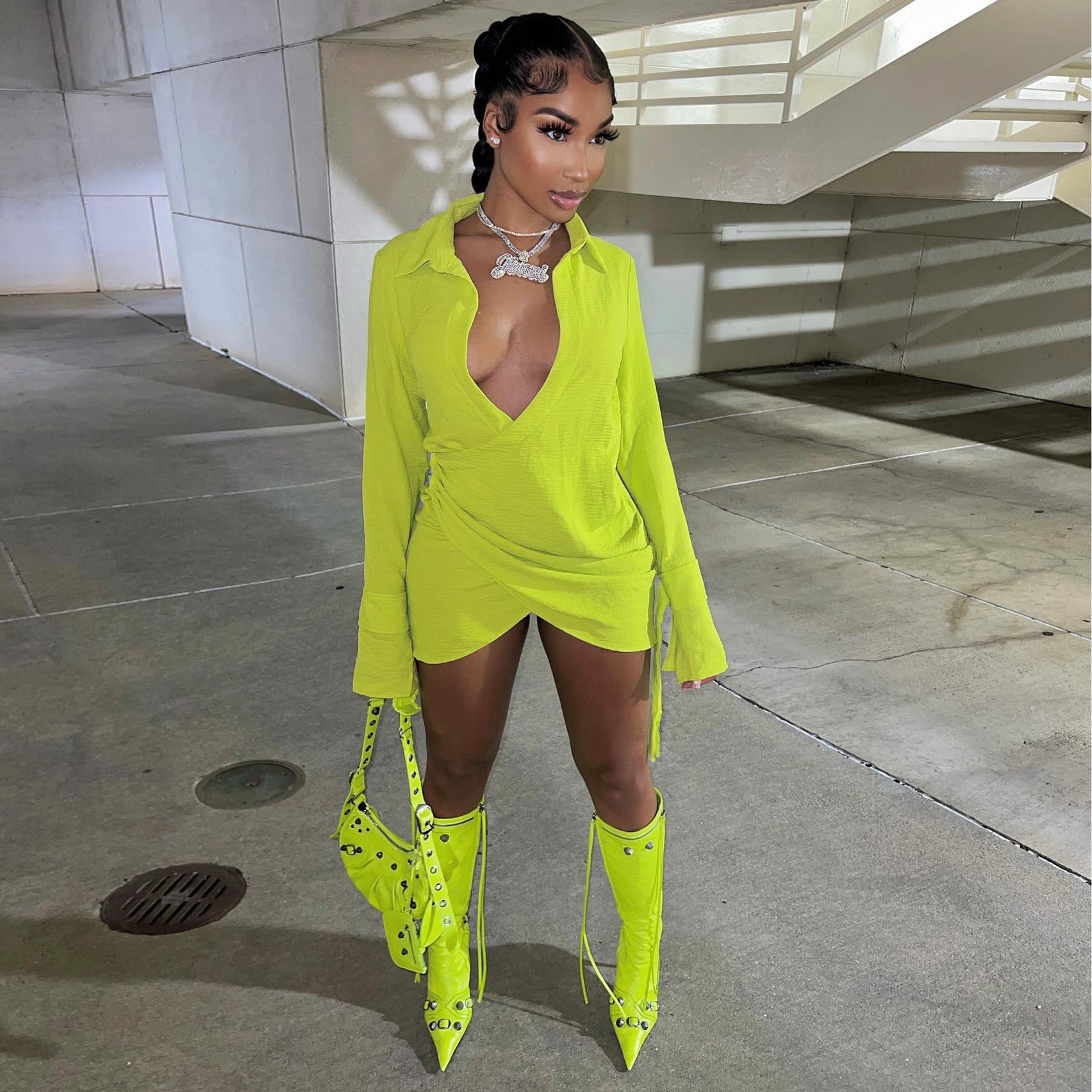Happy Hour Plunge Mini Shirt Dress