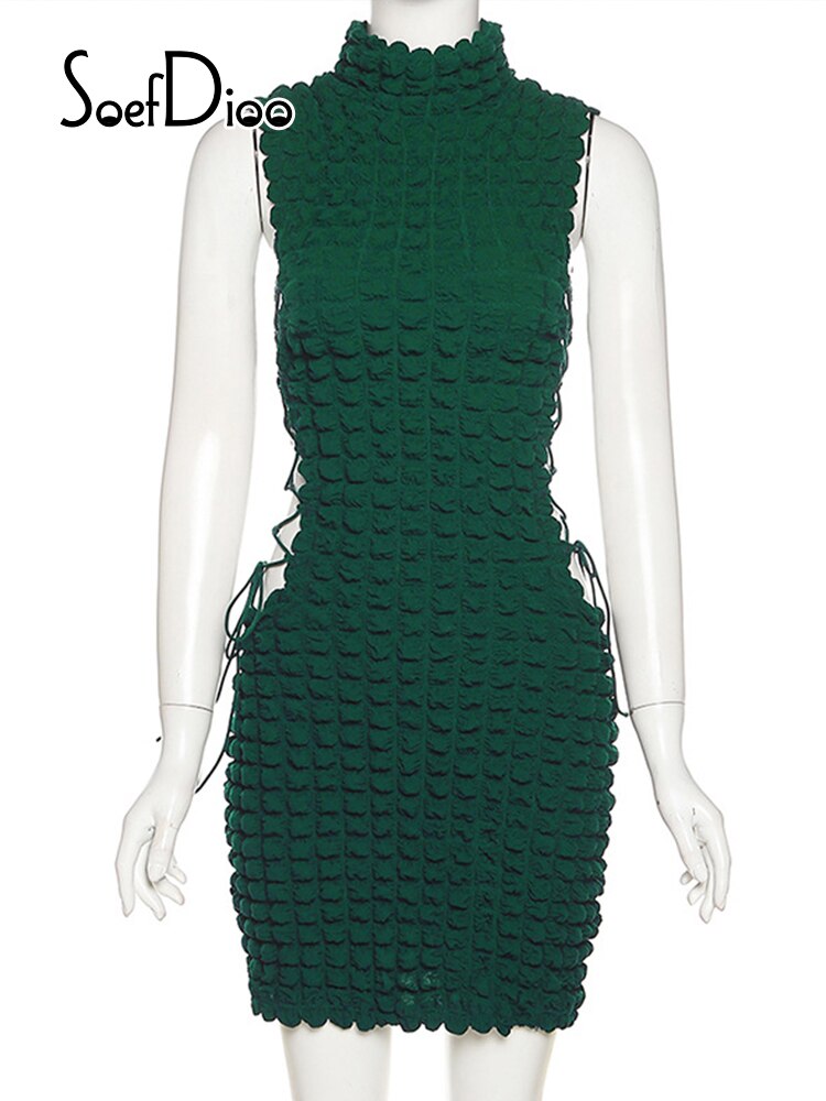 Look stunning in the Designer Dresses High Neck Lace Up Mini Dress this summer. Featuring a high neck, solid sleeved design and lace up detail, this dress is so unique that you'll undoubtedly turn heads. It's perfect for an office look or special occasion with its form-fitting cut accentuating your shape. The dress is made from superior quality fabric that ensures you stay feeling comfortable all day long. With the designer touches you not only look elegant but also guarantee your outfit makes an impact wherever you go. Don't miss out on looking amazing! Get your hands on this versatile ladies mini dress today and show off your unique style.