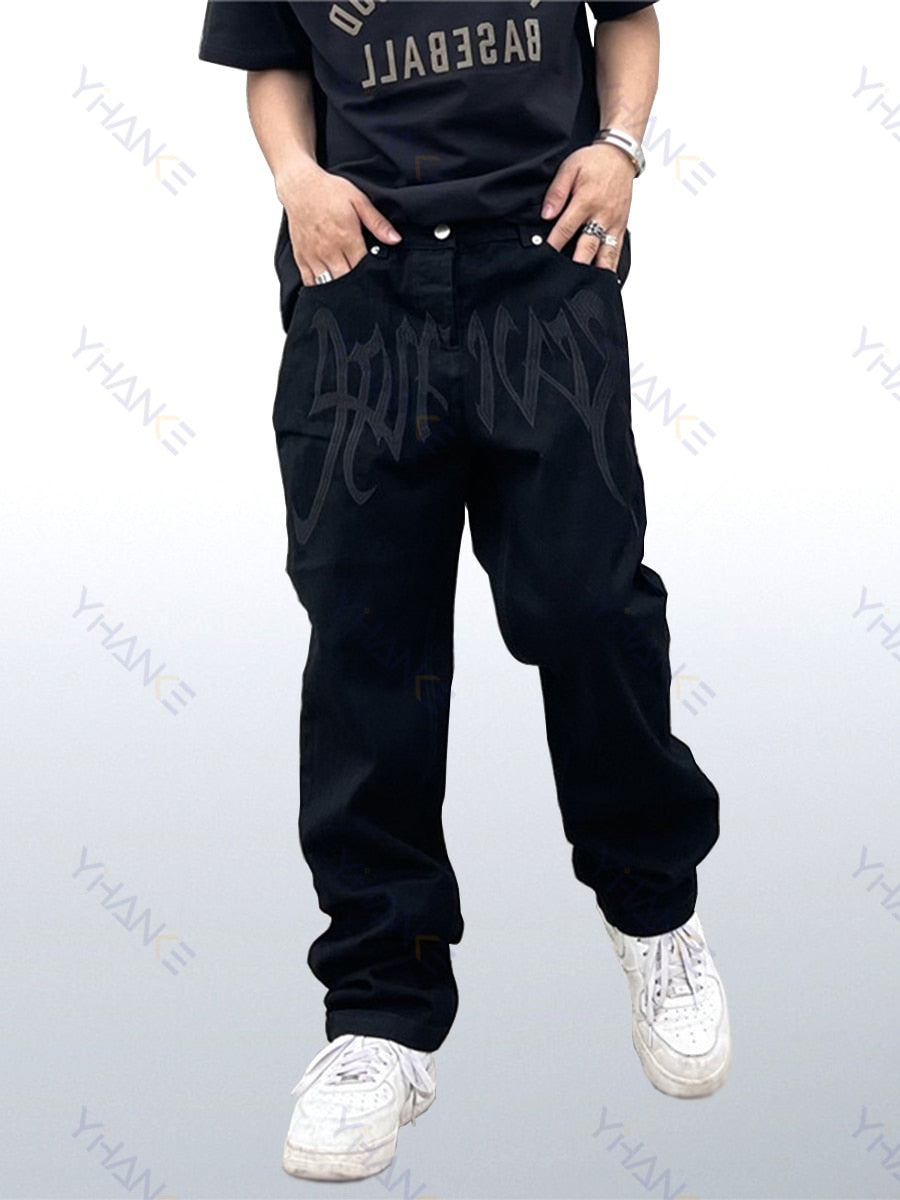 Introducing Emo Men Fashion Black Street Embroidery Loose Jeans Straight Pants Hip Hop Jeans Men Pants Clothes Men. Crafted from the finest denim fabrics, these stylish black street jeans create a visual transformation with their loose, low-cut silhouette and straight cut. The unique embroidery detailing elevates the look, while the slim fit in the legs helps to show off a man's figure. The design is sure to be a staple garment in your fashionable wardrobe. Comfortable and versatile, they can be dressed up or down depending on the occasion making them an essential clothing item for any occasion. With this high-quality garment, you don't have to sacrifice style or comfort - each piece is made using only the best materials, ensuring lasting quality and maximum confidence throughout wear. Look cool and move confidently with Emo Men Fashion Black Street Embroidery Low Cut Loose Jeans Straight Pants Hip Hop Jeans Men Pants Clothes Men!