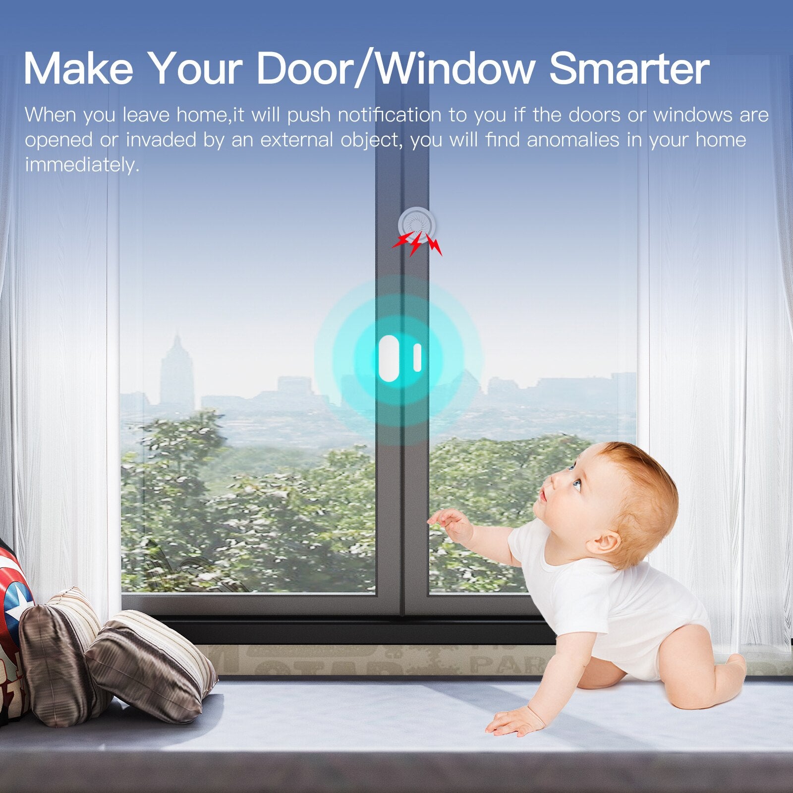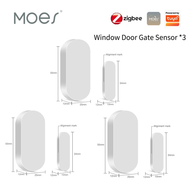 The MOES Door & Window Sensor is the perfect addition to your home security system. This sleek, modern device offers you peace of mind, with a robust set of features designed to keep your family safe. Equipped with hall sensing technology and tamper protection, the sensor will send out real-time notifications whenever it detects external objects or animals, giving you real-time awareness of what's happening at your home. It also has low battery reminders so you'll always know when it needs changing. Installation is easy - just add it to your Zigbee Hub hub and integrate into various environments using the Smart Life/Tuya App. No additional wiring required. Place it anywhere around the house that needs extra protection - from bedrooms and garages to bathrooms and gardens. Get 24/7 protection with one multi-sensor system that triggers a signal if an intruder is detected, ensuring maximum security for you and your family day and night!