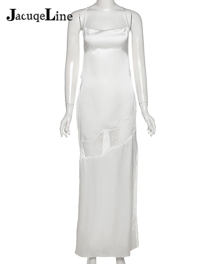 Sleeveless Bodycon Midi Lace Satin Dress