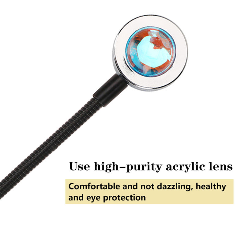 Introducing the Sunset Lamp, a captivating and tranquil lighting accessory that brings the beauty of a mesmerizing sunset into your living space. This lamp creates a soothing ambiance, allowing you to unwind and relax in the comfort of your own home. Designed to mimic the warm and vibrant hues of a sunset, this lamp features a gradual color transition that takes you through the various stages of dusk. From soft pinks and oranges to deep purples and blues, the Sunset Lamp creates a serene and enchanting atmosphere. With adjustable brightness settings, you can customize the intensity of the light to suit your preference and create the perfect ambiance for any occasion. Whether you're reading a book, meditating, or setting a romantic mood, this lamp offers versatility to match your needs.