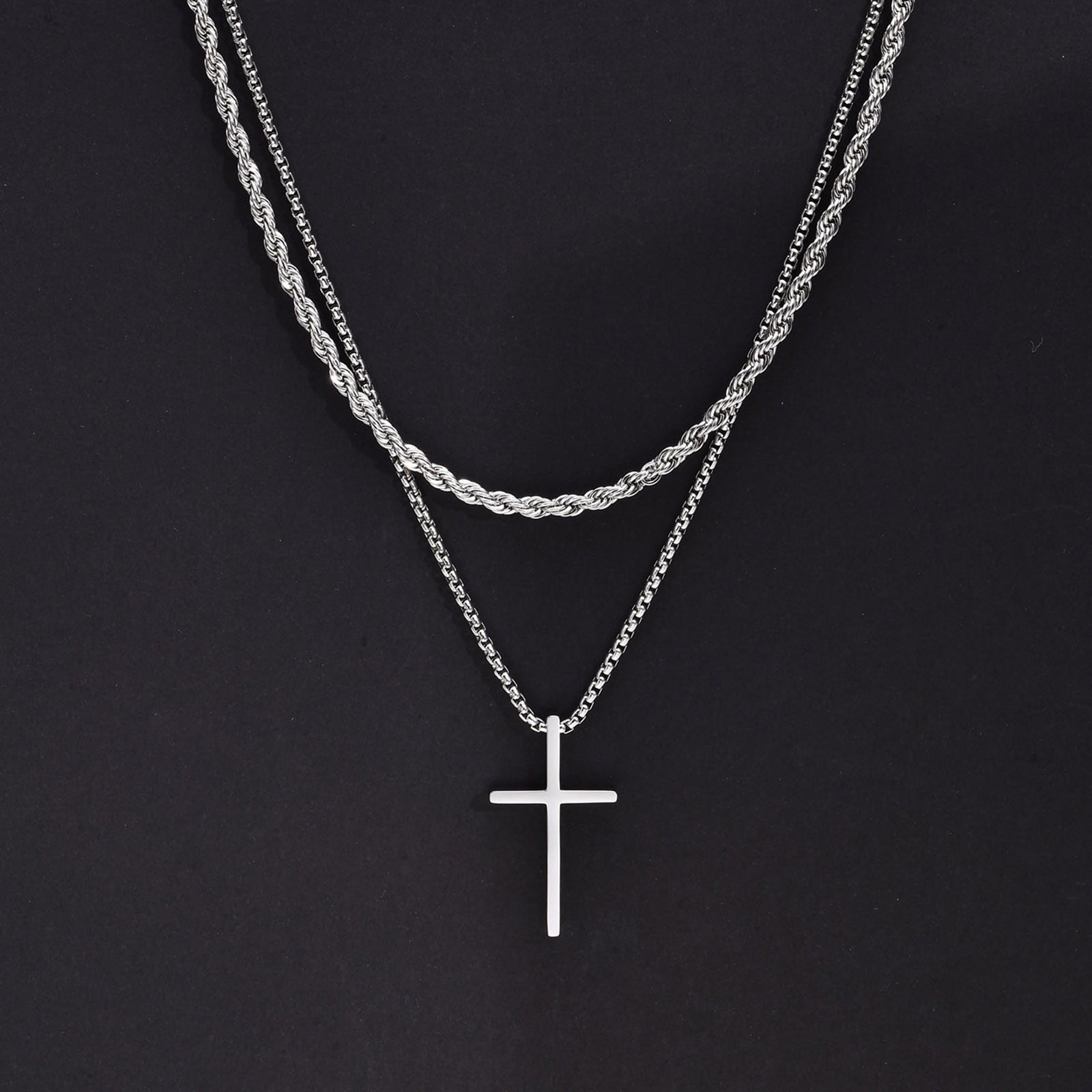 Introducing our Vnox Mens Cross Necklaces, a perfect blend of simplicity and style. Crafted from durable stainless steel, these necklaces feature a layered plain cross pendant, adding a touch of elegance to your look. The necklace comes with a rope box chain that complements the pendant beautifully. The combination of the cross pendant and the chain creates a simple yet impactful design that can be worn for various occasions. Whether it's a casual outing or a formal event, this necklace is a versatile accessory that suits any style.