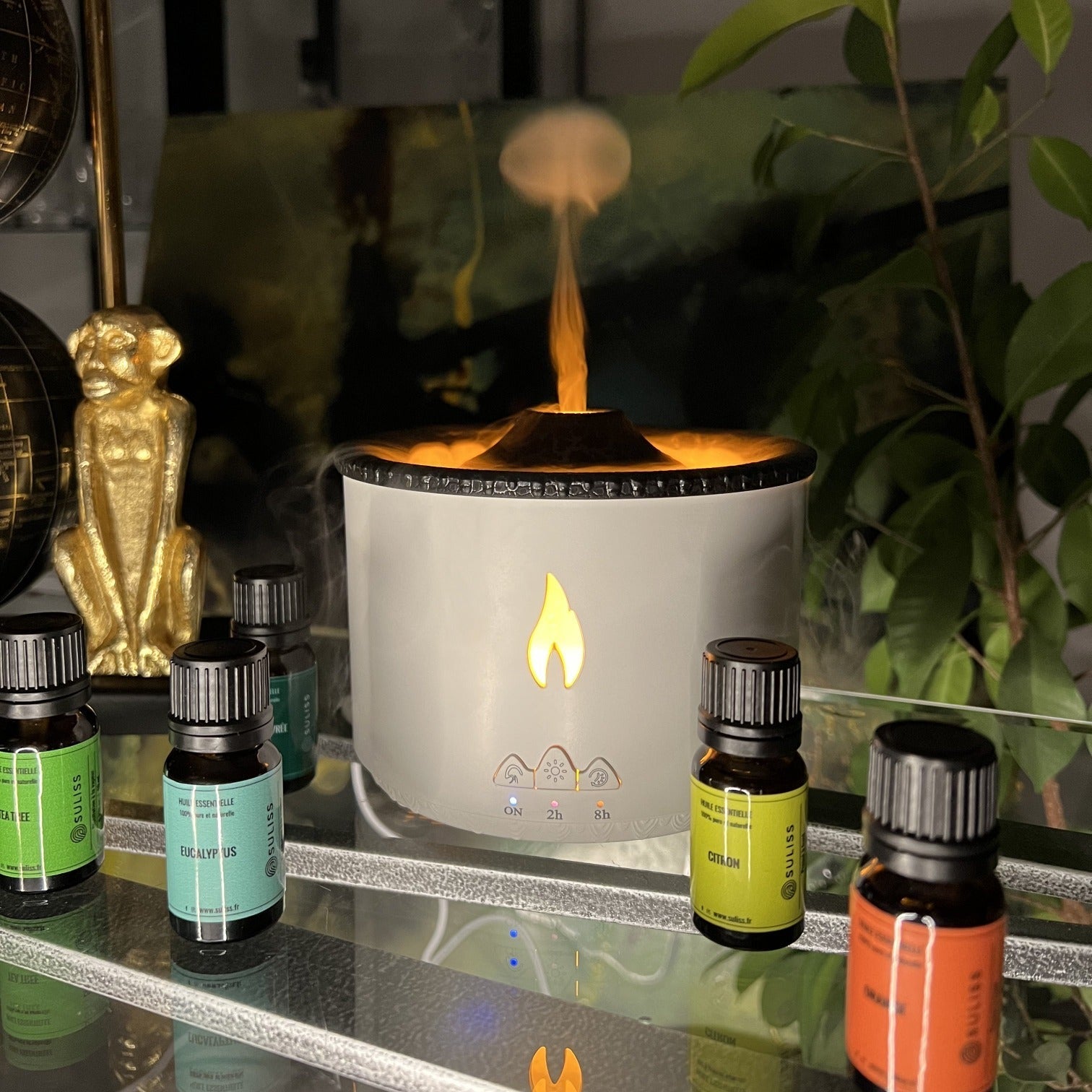 Transform your living space with the captivating Volcano Diffuser. Whether you're seeking tranquility or aiming to infuse your home with enchanting aromas and improved air quality, this diffuser is the ultimate solution. Its sophisticated light effects and sleek design will enhance your decor effortlessly. This aromatic marvel not only purifies and humidifies the air, banishing unwanted odors and dryness, but also brings relief to respiratory discomfort, ensuring a more restful sleep. Enhance your environment further by adding a few drops of your favorite essential oil to the water reservoir, allowing a delightful fragrance to envelop your space. The Volcano Diffuser™ redefines relaxation. Choose from three timer settings (2 hours, 8 hours, or continuous) to tailor its operation to your needs, and rest assured knowing it will automatically power down as you slumber. The gentle, tranquil ultrasonic waves won't disrupt your rest. In addition to its respiratory benefits and odor elimination, it fosters a serene ambiance in any room, benefiting both your well-being and your indoor plants. A simple button press shifts the diffuser from standard flame mode to the captivating volcano mode, even allowing you to shift hues from red to blue. With ample capacity, the Volcano Diffuser can run continuously for up to 8 hours, making it the ideal choice for around-the-clock enjoyment. Elevate your senses and embrace a soothing oasis with the Volcano Diffuser™.