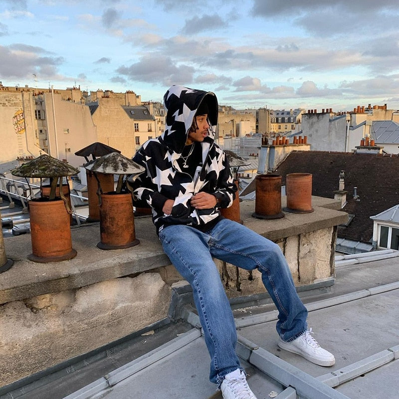 Stay in fashion with our stylish Zip Up Long Sleeve Unisex Hoodie. Boasting a versatile star print across the chest, arms and hood, this piece has a cool and classic look that will never go out of style. Made from premium fabric for comfortable wear and durable quality, this hoodie features a zip up closure for convenience and protection from the elements. The sleek ribbed cuffs and hem provide an enhanced fit for all-day comfort anywhere you go. Whether you are running errands or lounging at home, this hooded sweatshirt is the perfect way to stay stylish while keeping warm. So don’t wait; grab one of these Zip Up Long Sleeve Unisex Hoodies today to stay on trend!